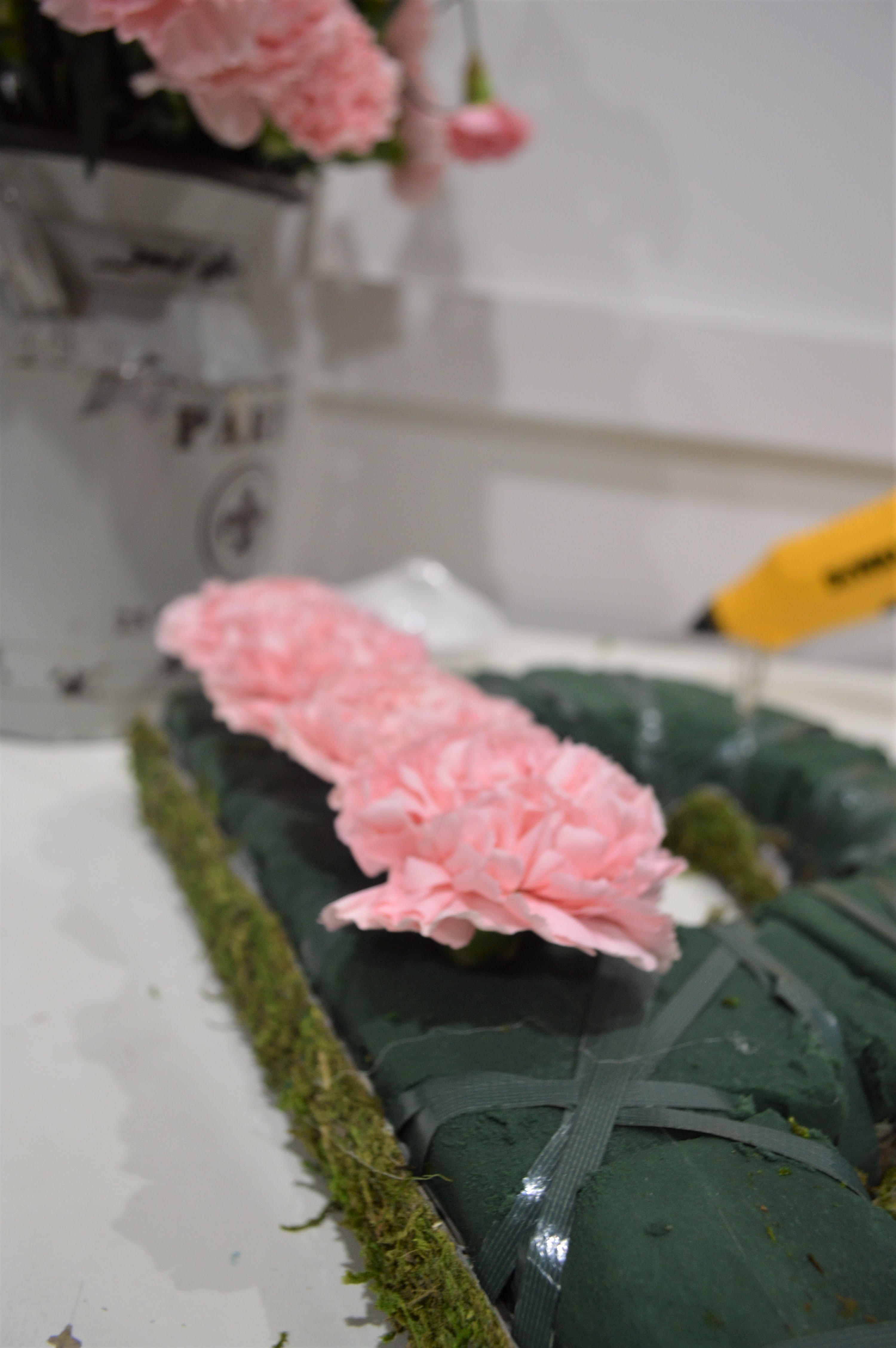 Step 7 | Cut the stem of each flower to about one inch and place in the center of the foam creating a pattern.